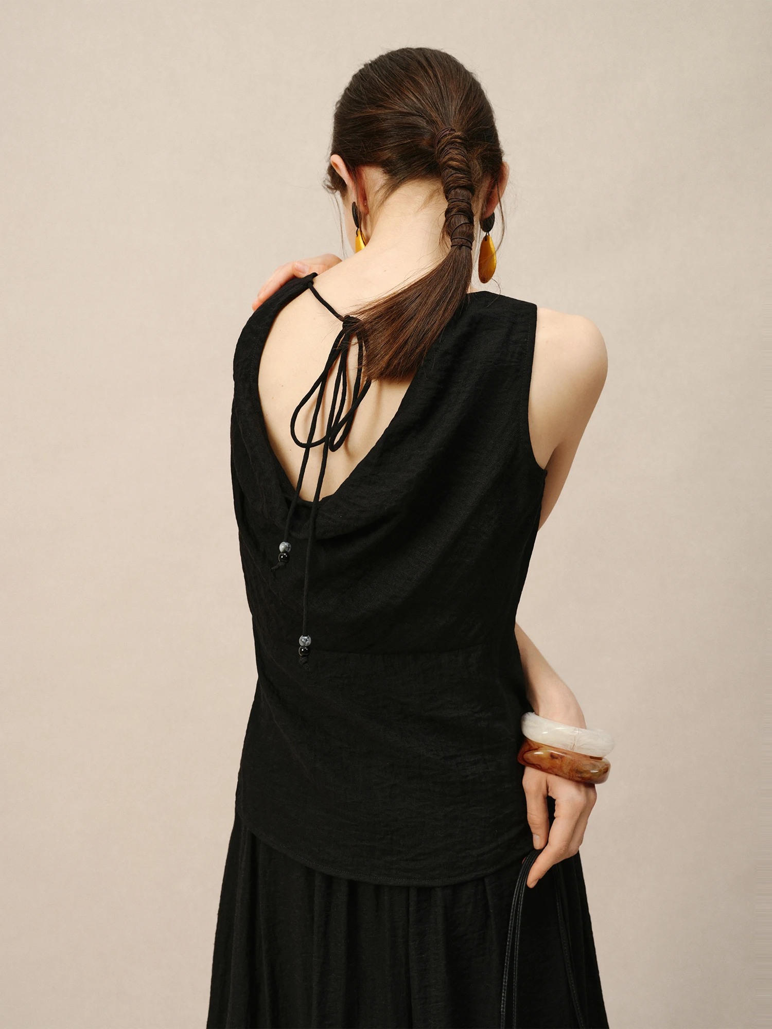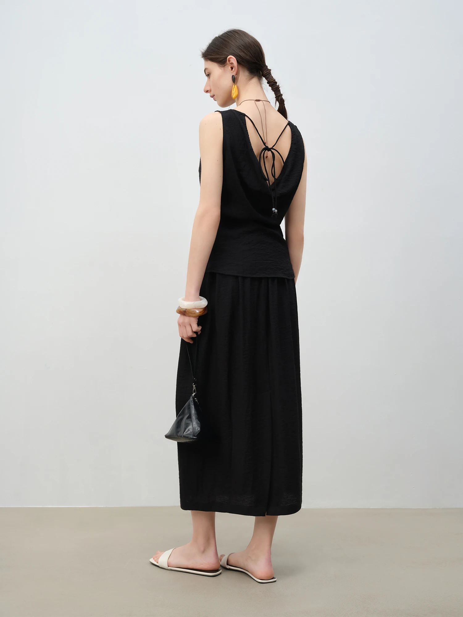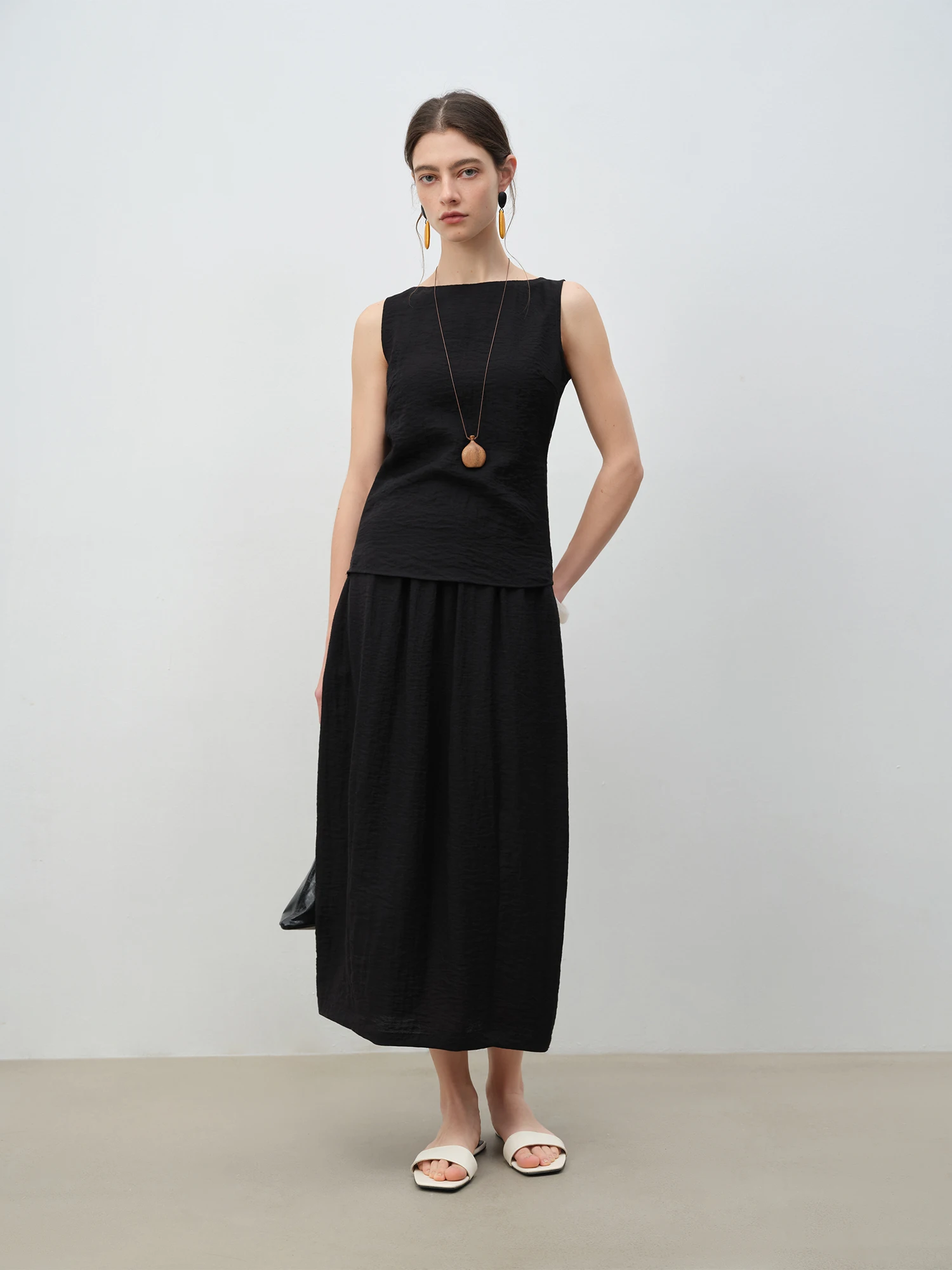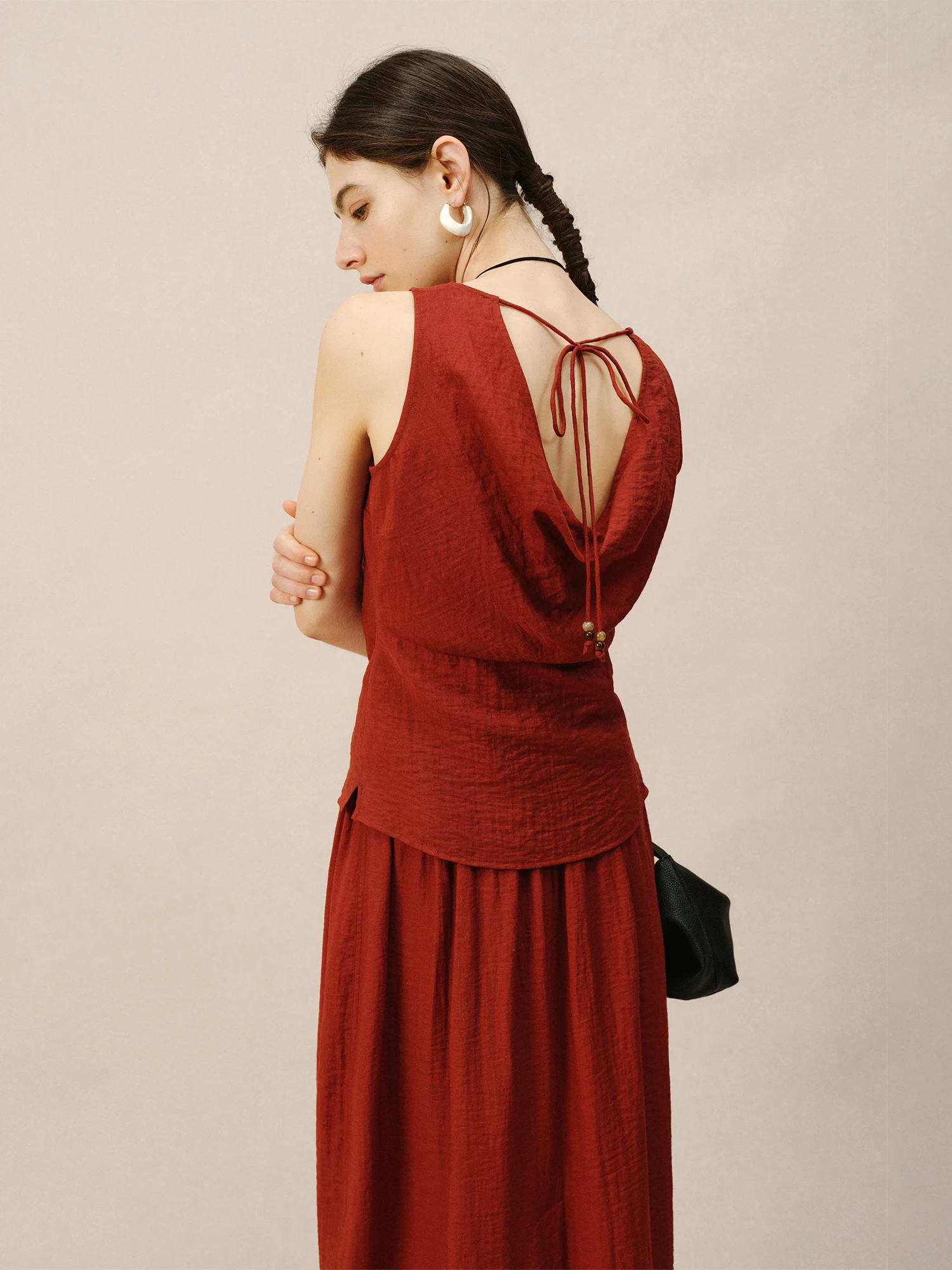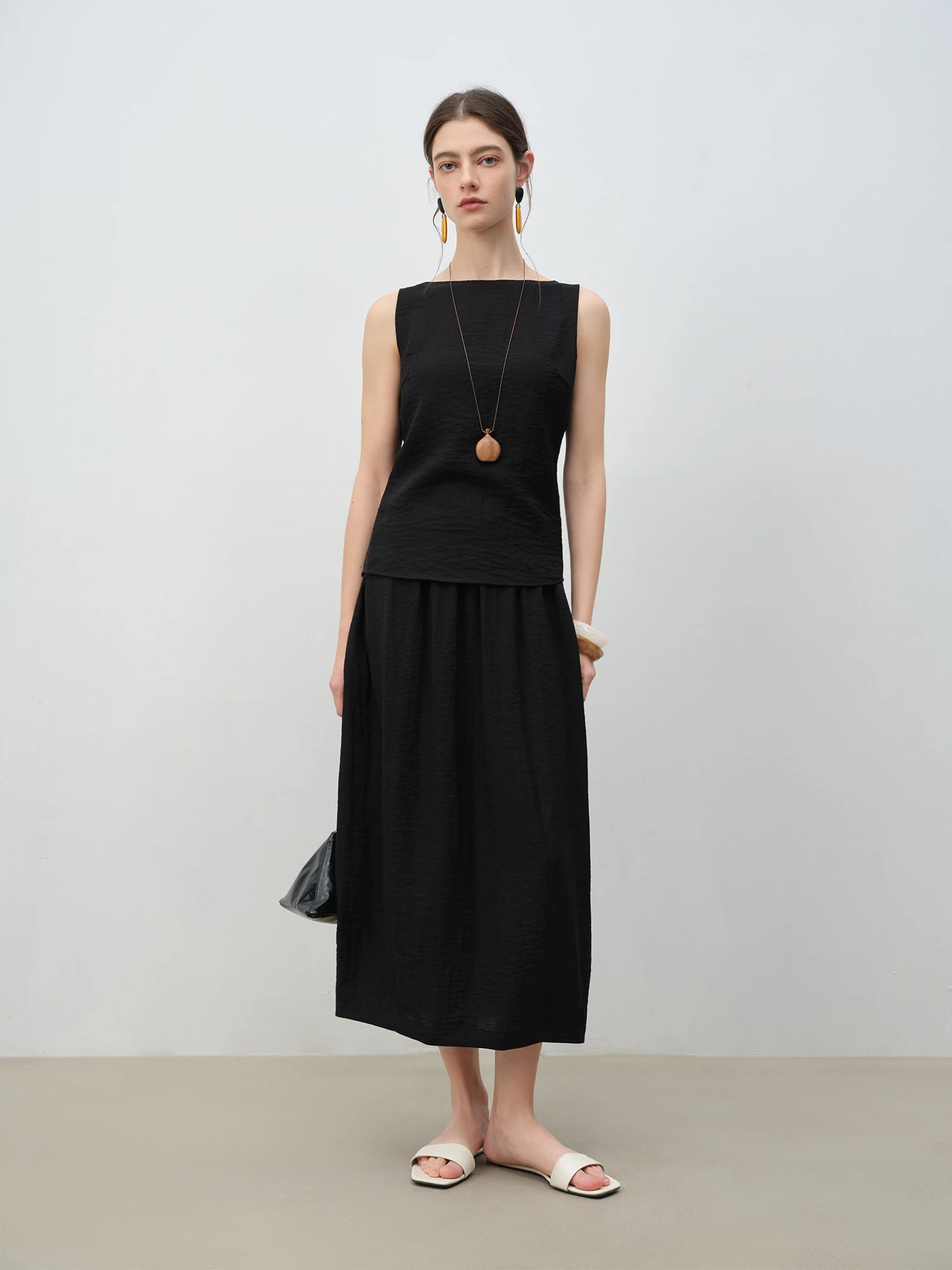 ZIQIAO 2025 Summer Petite Women Asian-Inspired Sleeveless Set - Flowy Blouson Skirt Tank Top Casual Outfit for Special Occasions