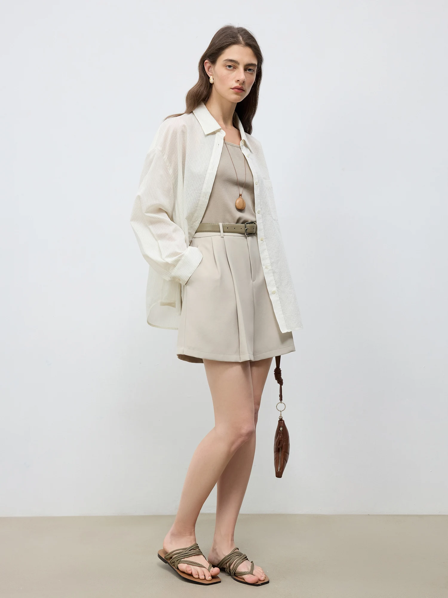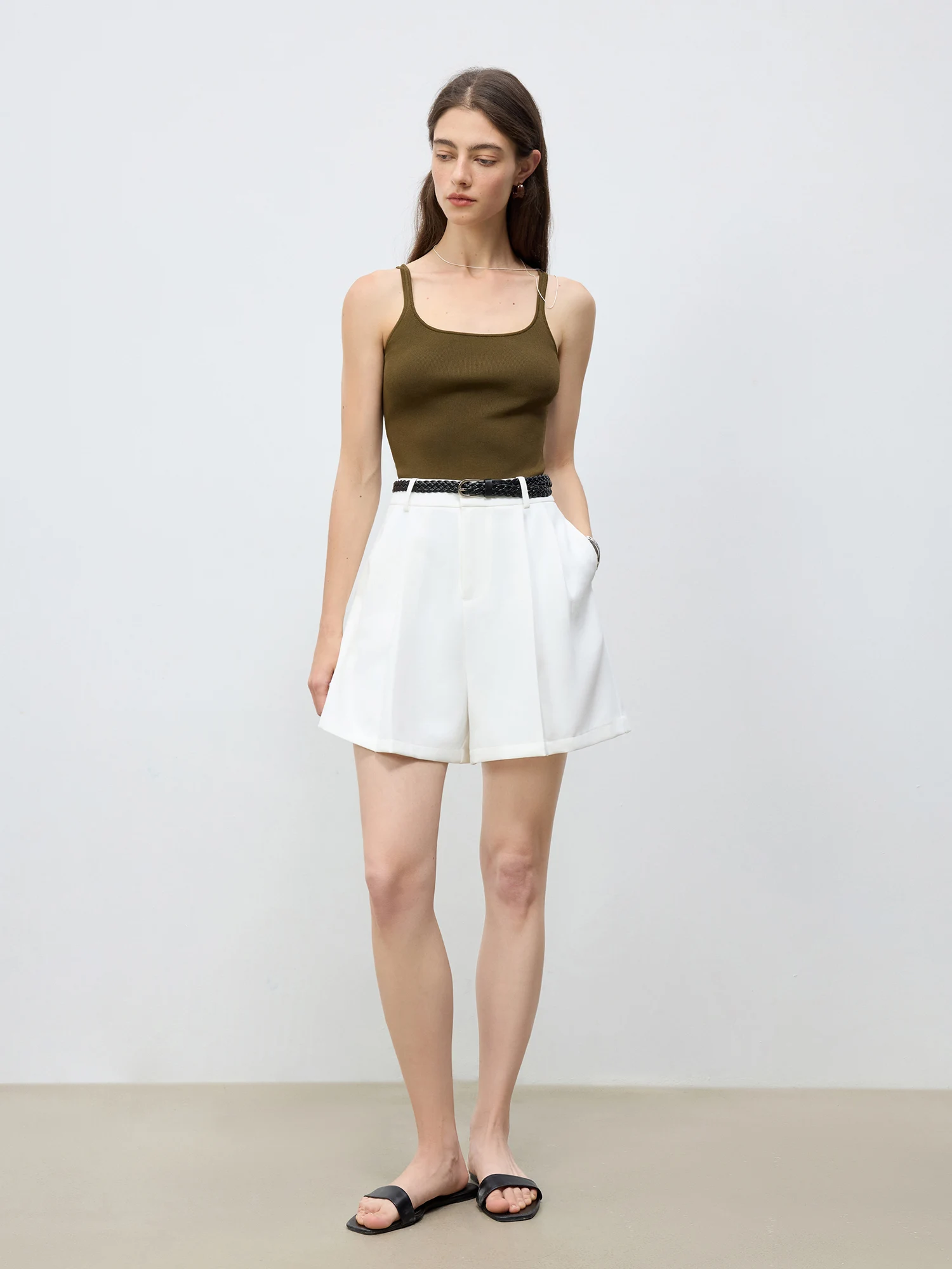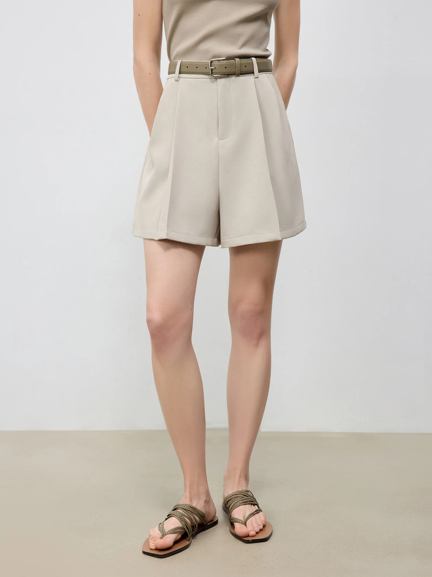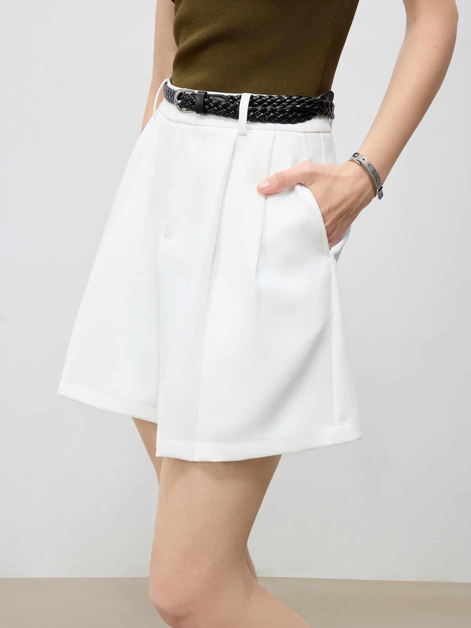 ZIQIAO 2025 Summer Women's Elevated Waist Wide Shorts - White Flattering Silhouette & Versatile Styling Casual Shorts 25ZQ92197