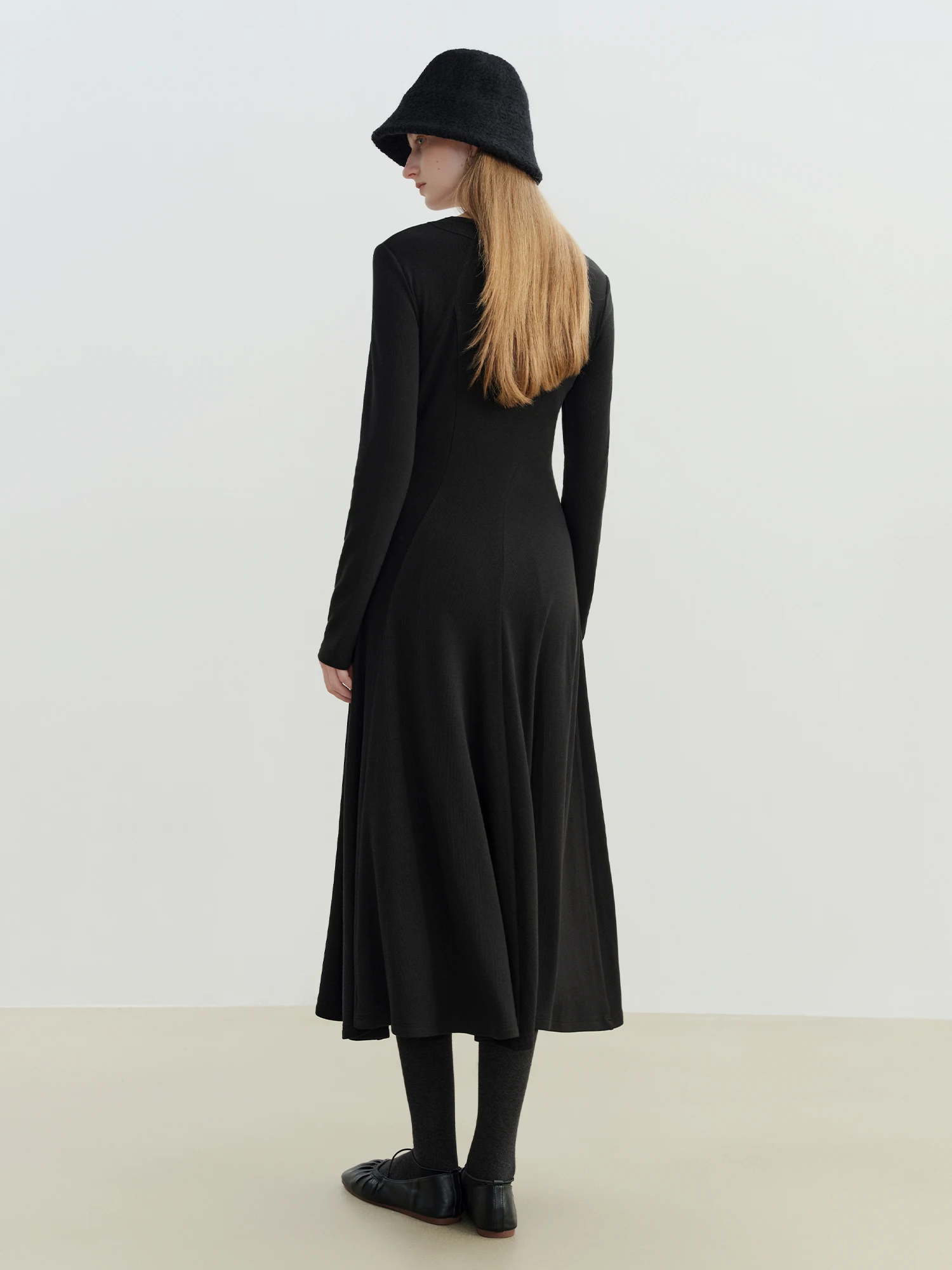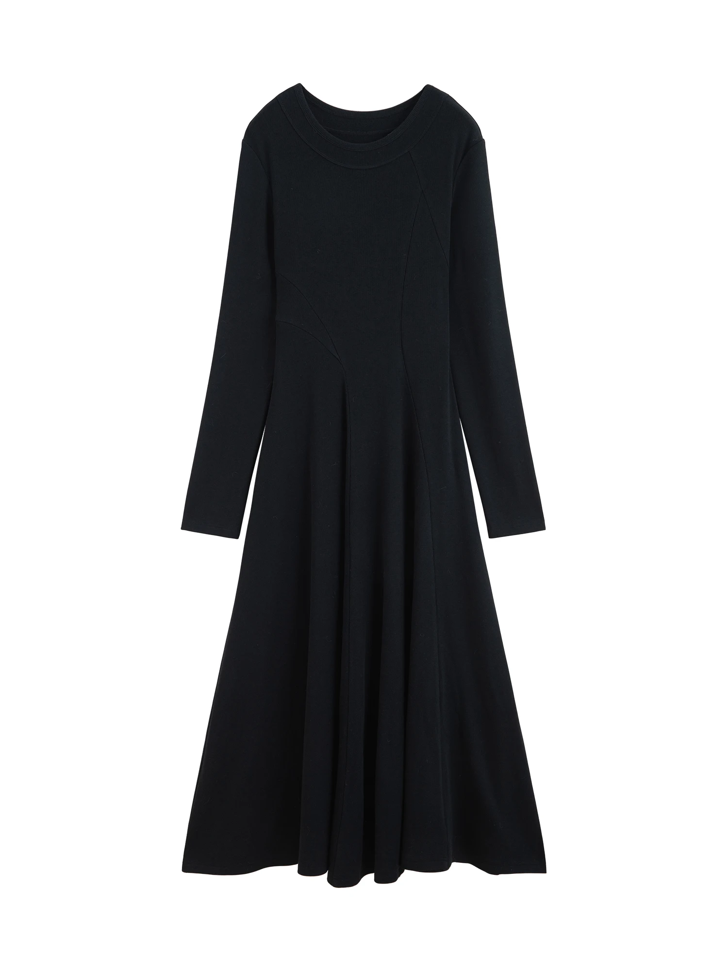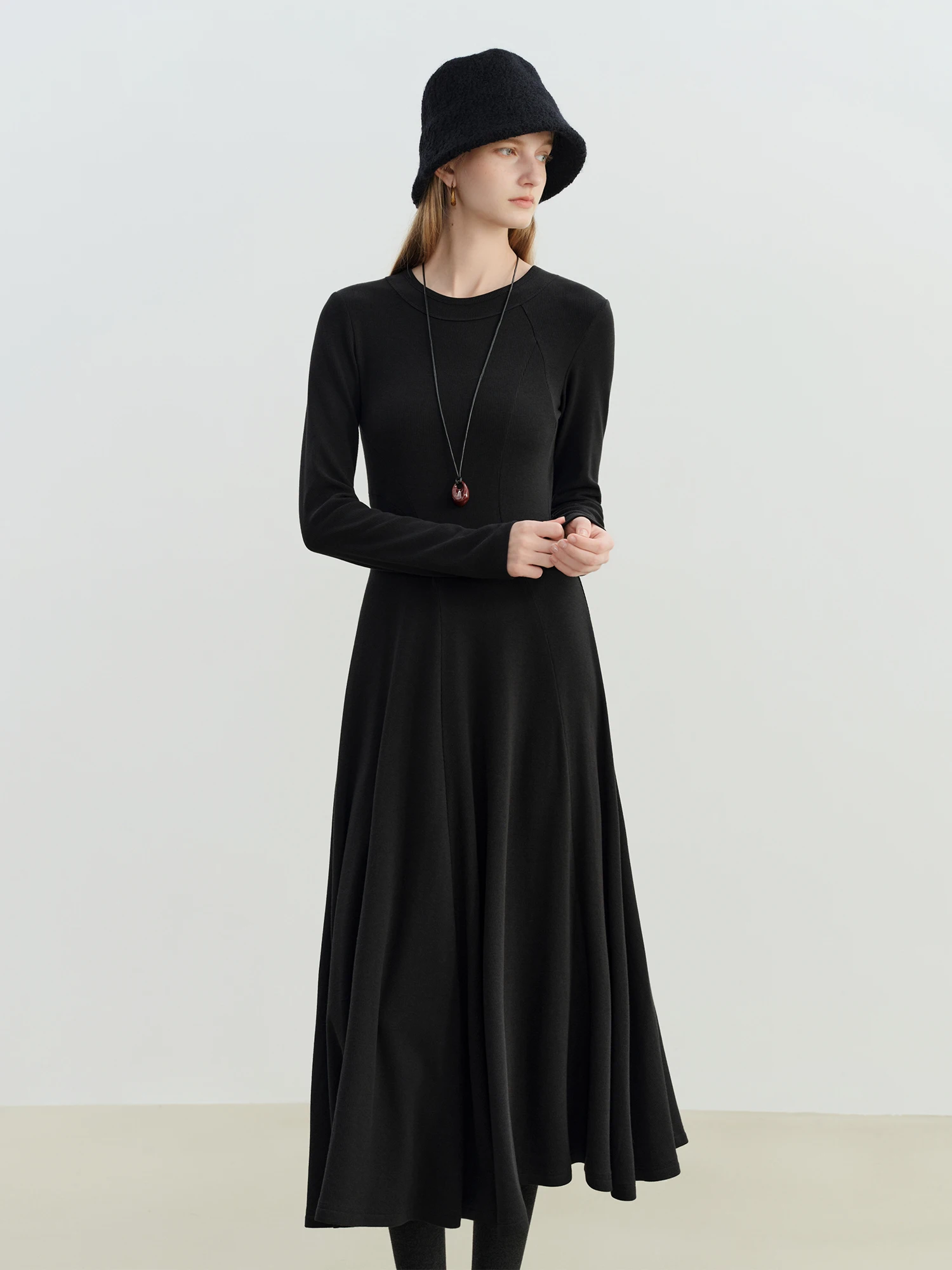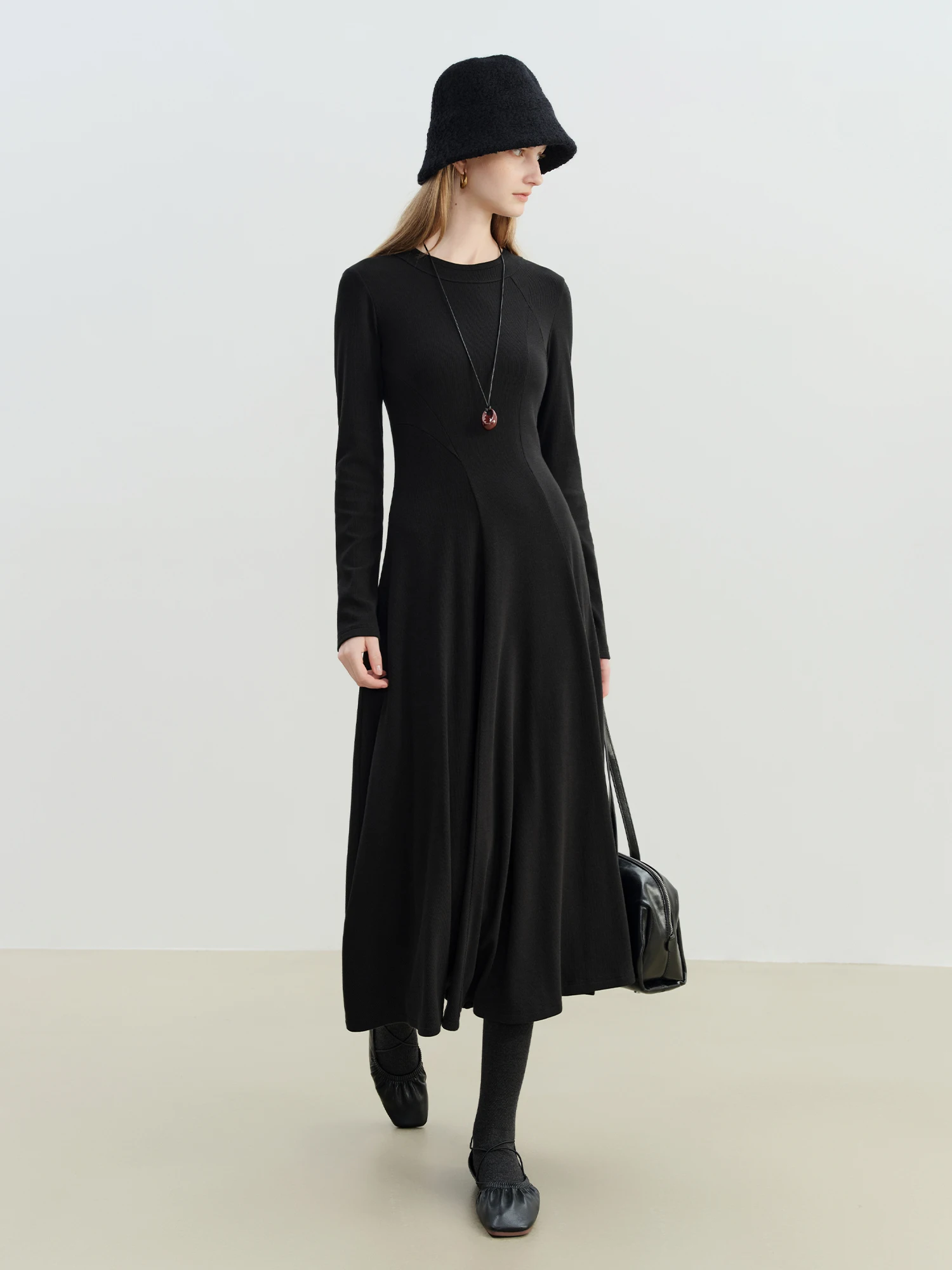 ZIQIAO 2025 Winter Women's Slim Fit Knit Dress - Round Neck Bodycon Little Black Dress Tummy Control Waist Elegant Mid-Length