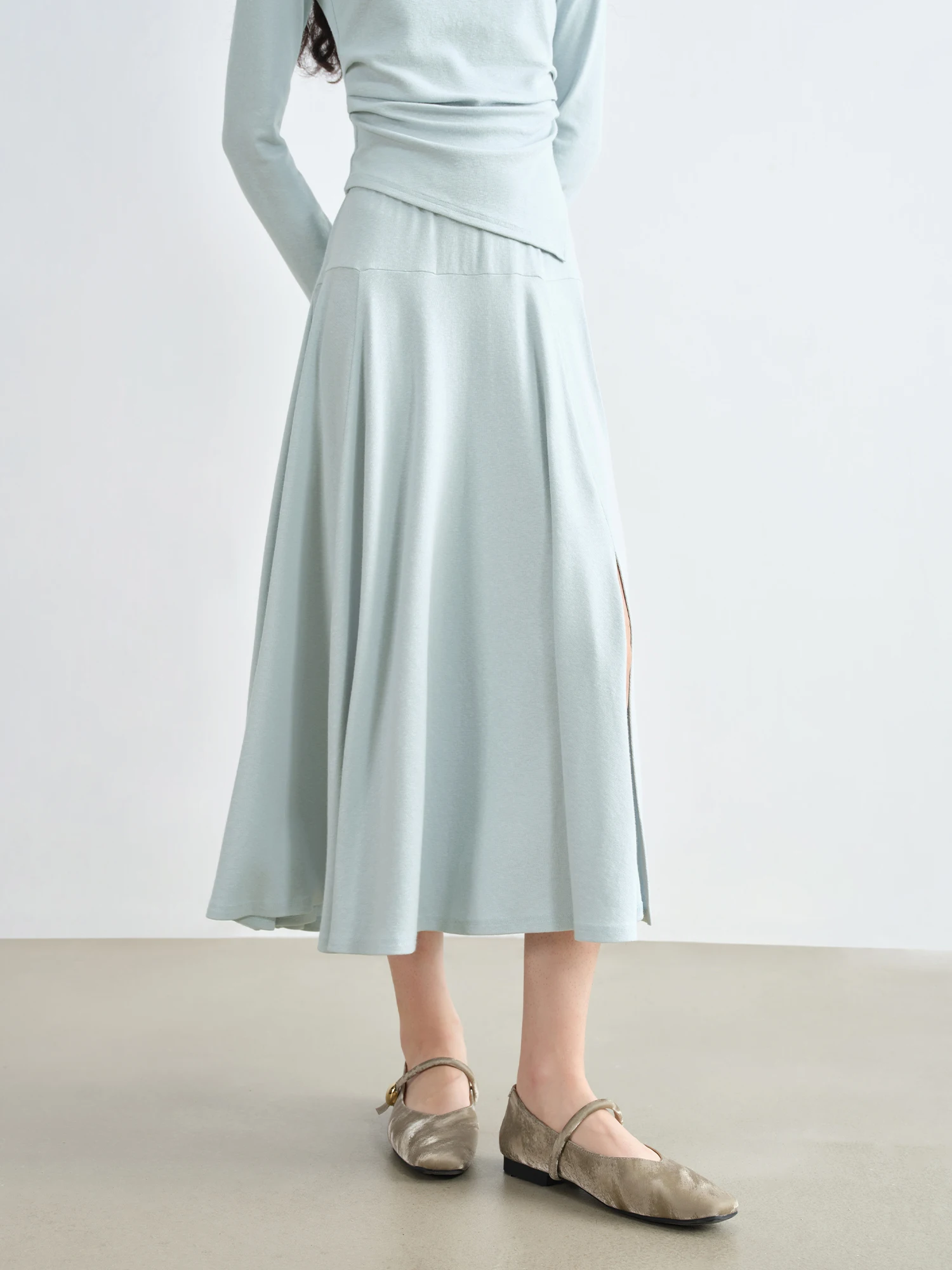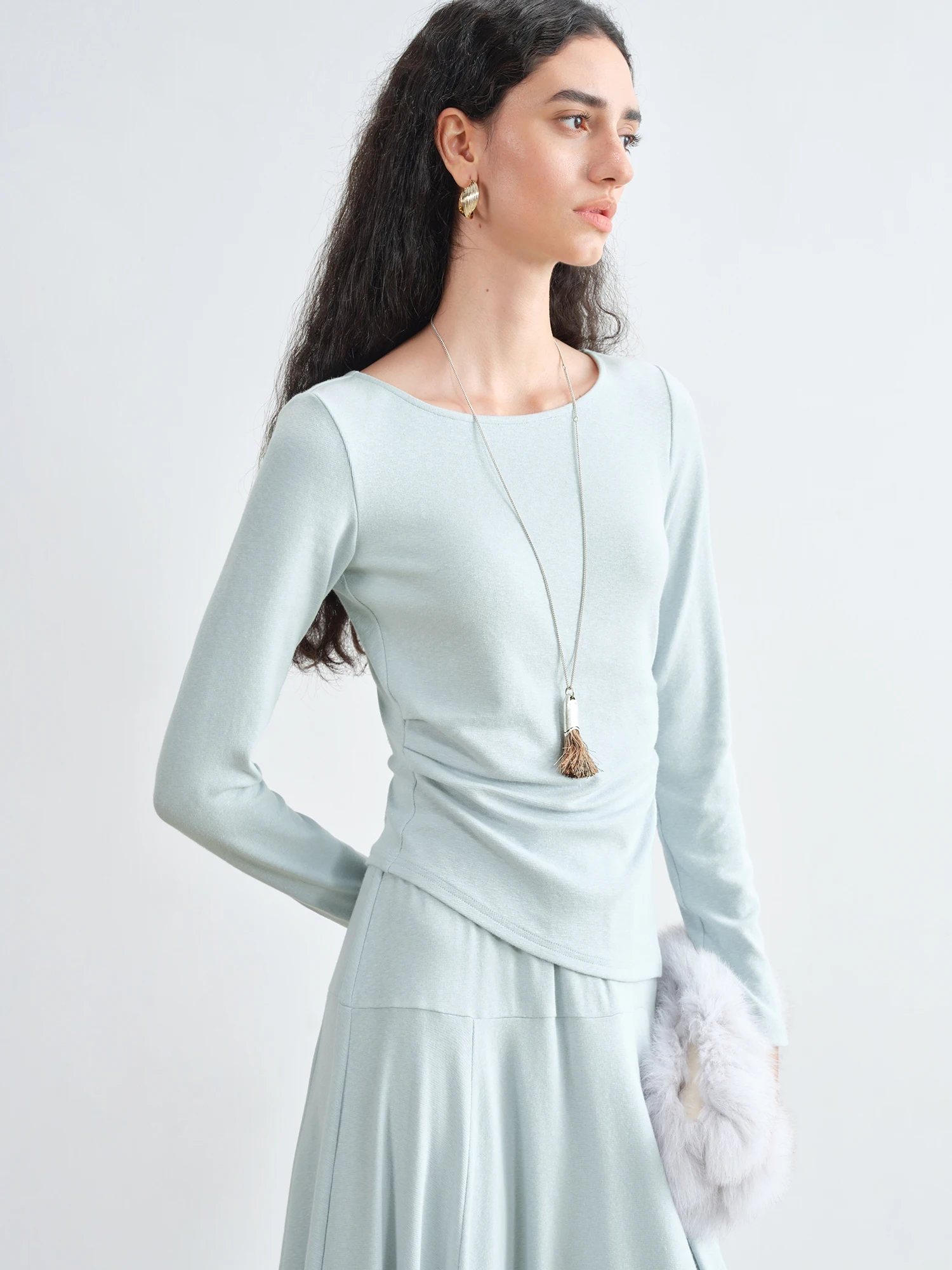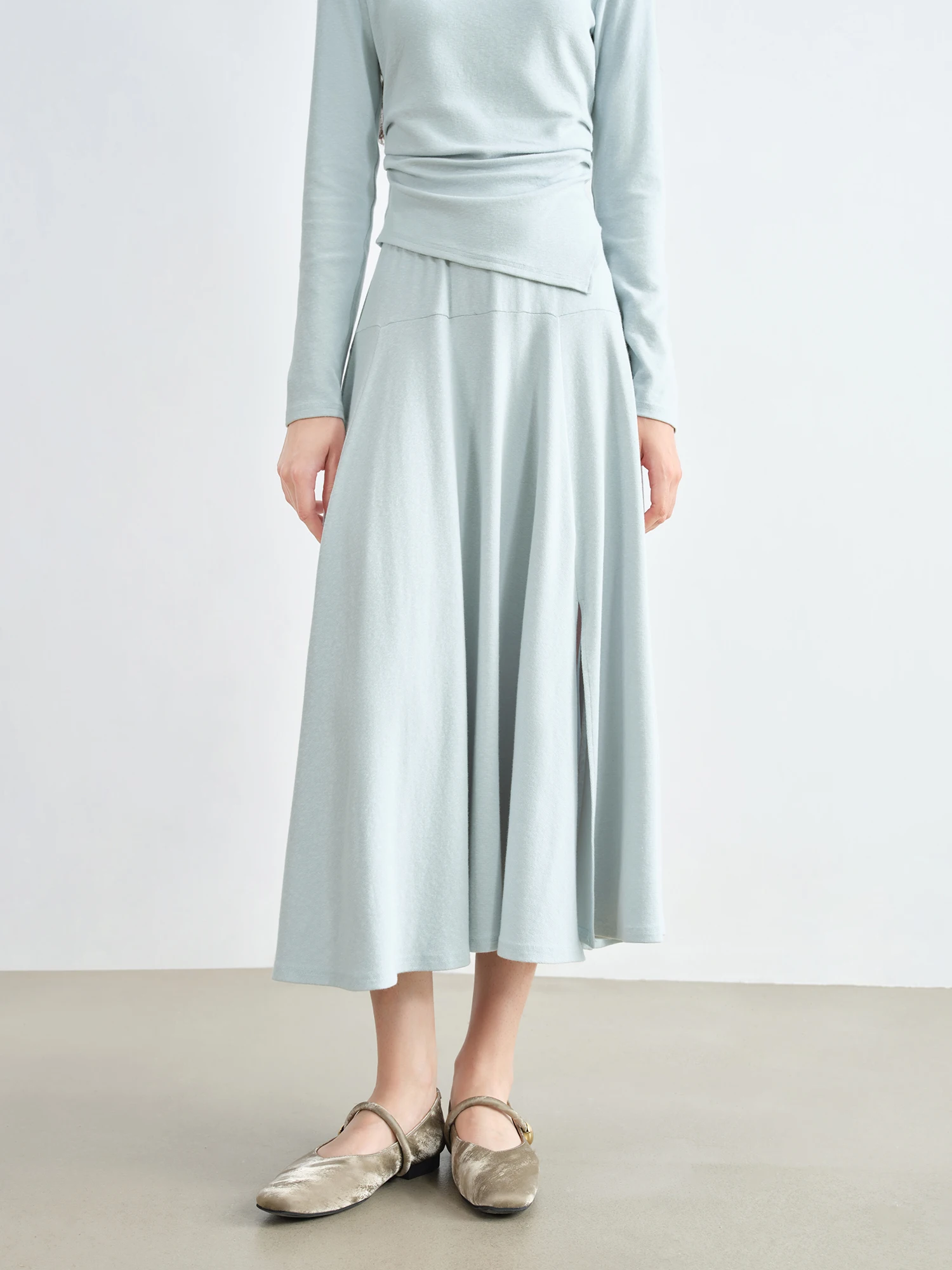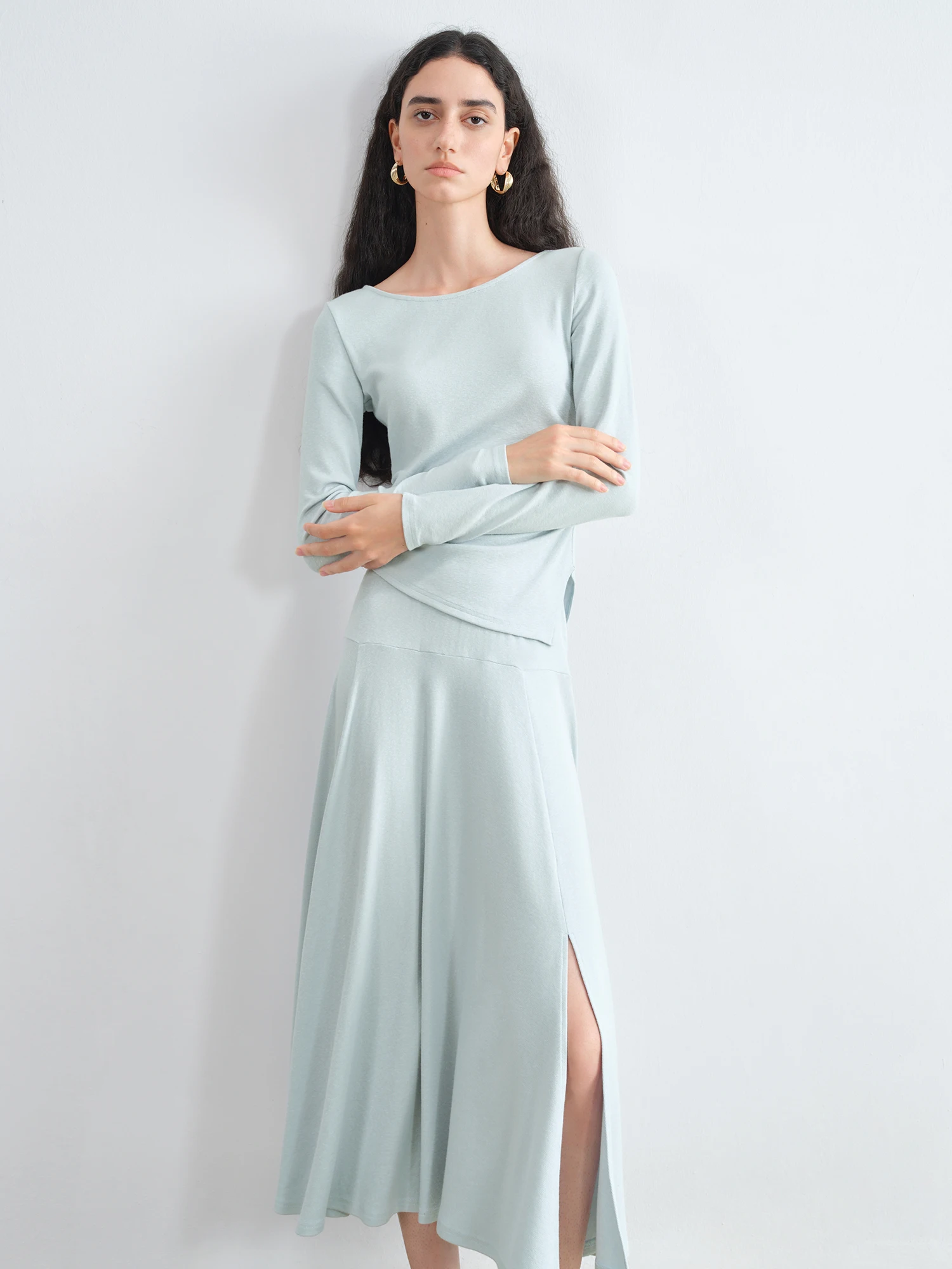 ZIQIAO Autumn 2025 Long Sleeve Set - Blue Soft Tone Matching Top & Skirt Long Length Women Casual Outfit