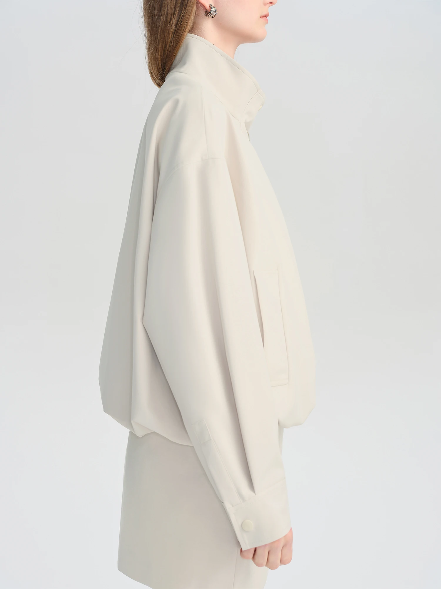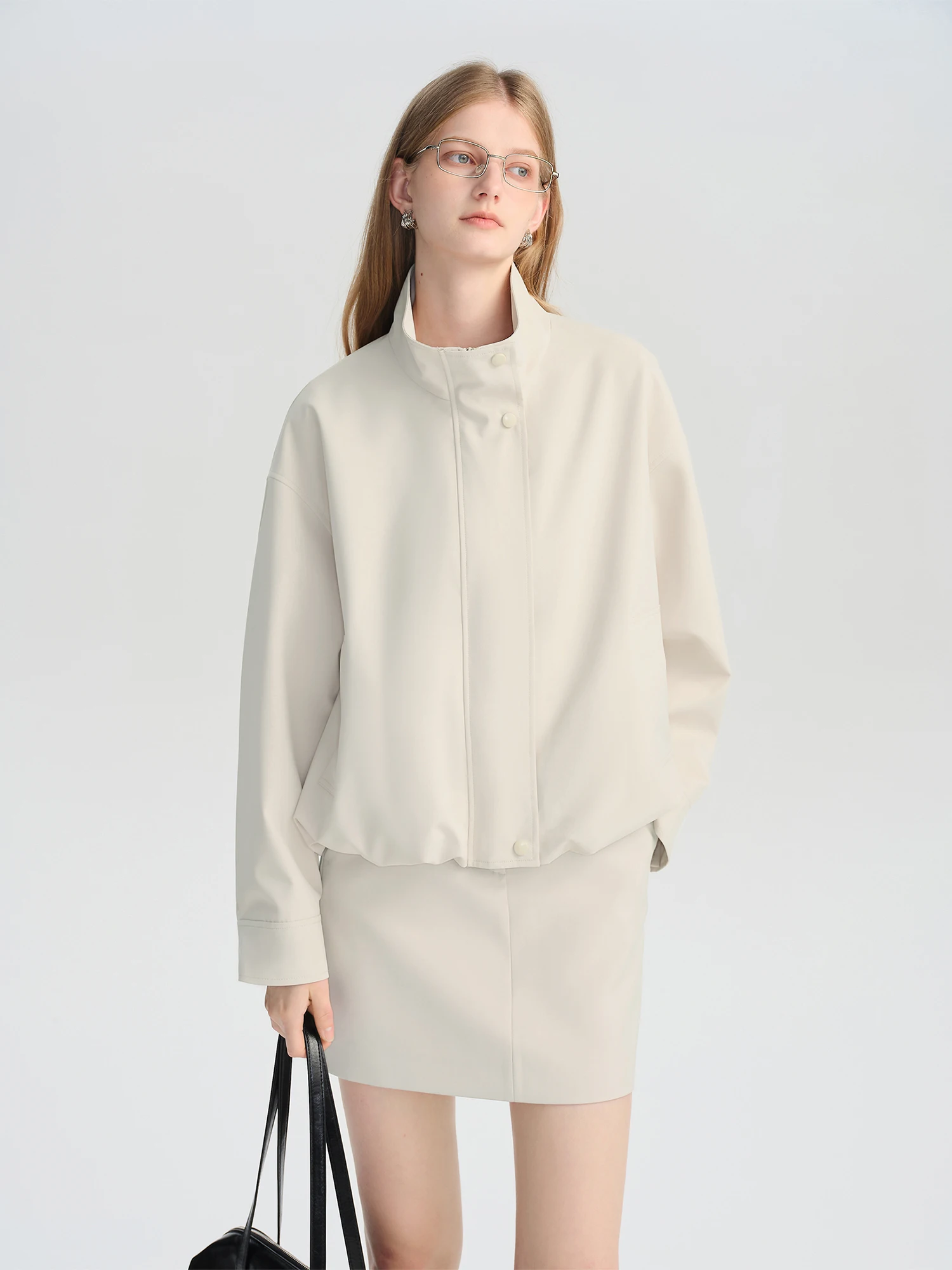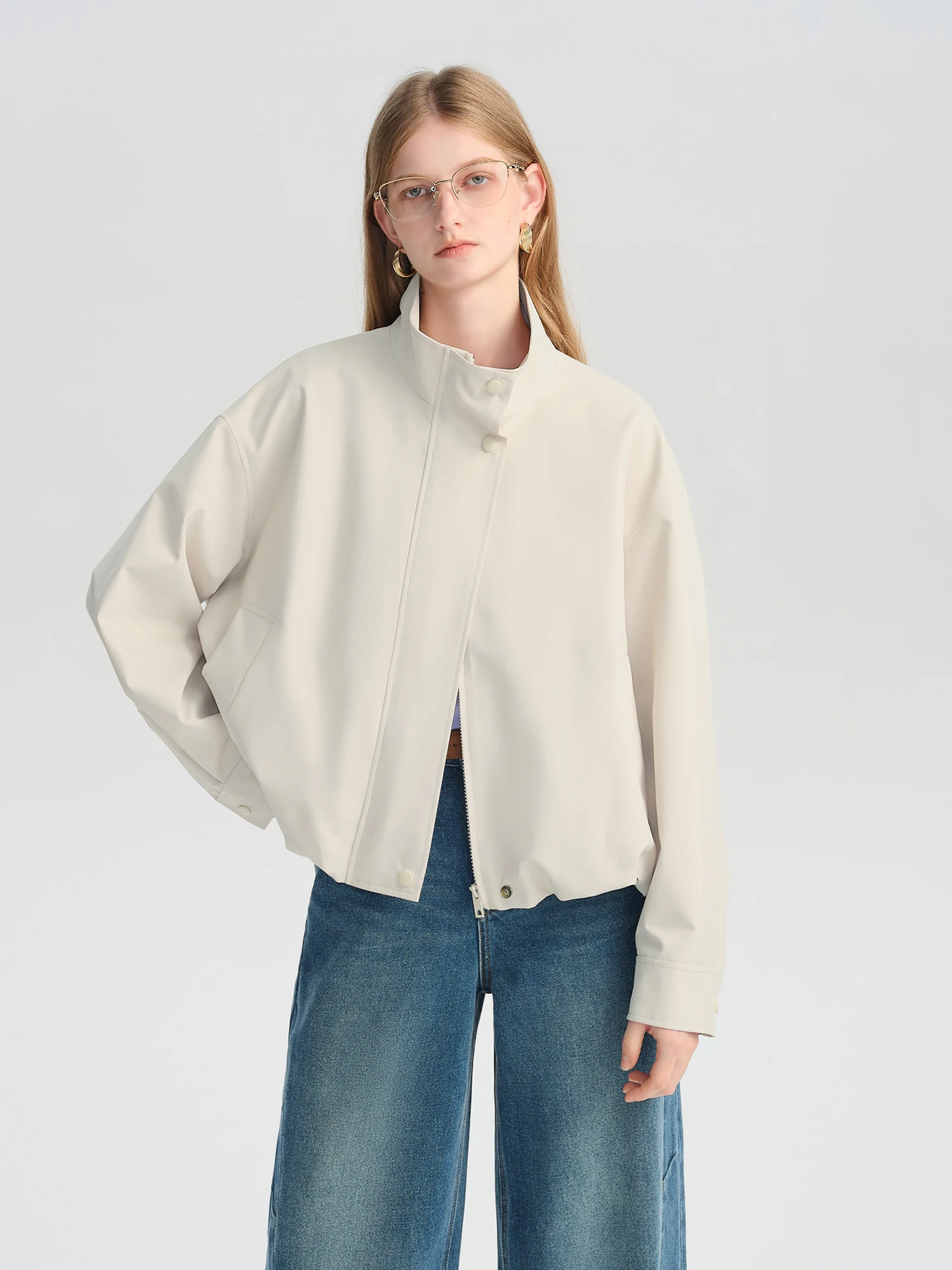 ZIQIAO Autumn 2025 Women's Cropped Stand Collar Jacket - Relaxed Fit Casual Short Outerwear Lightweight Layering Basic Top