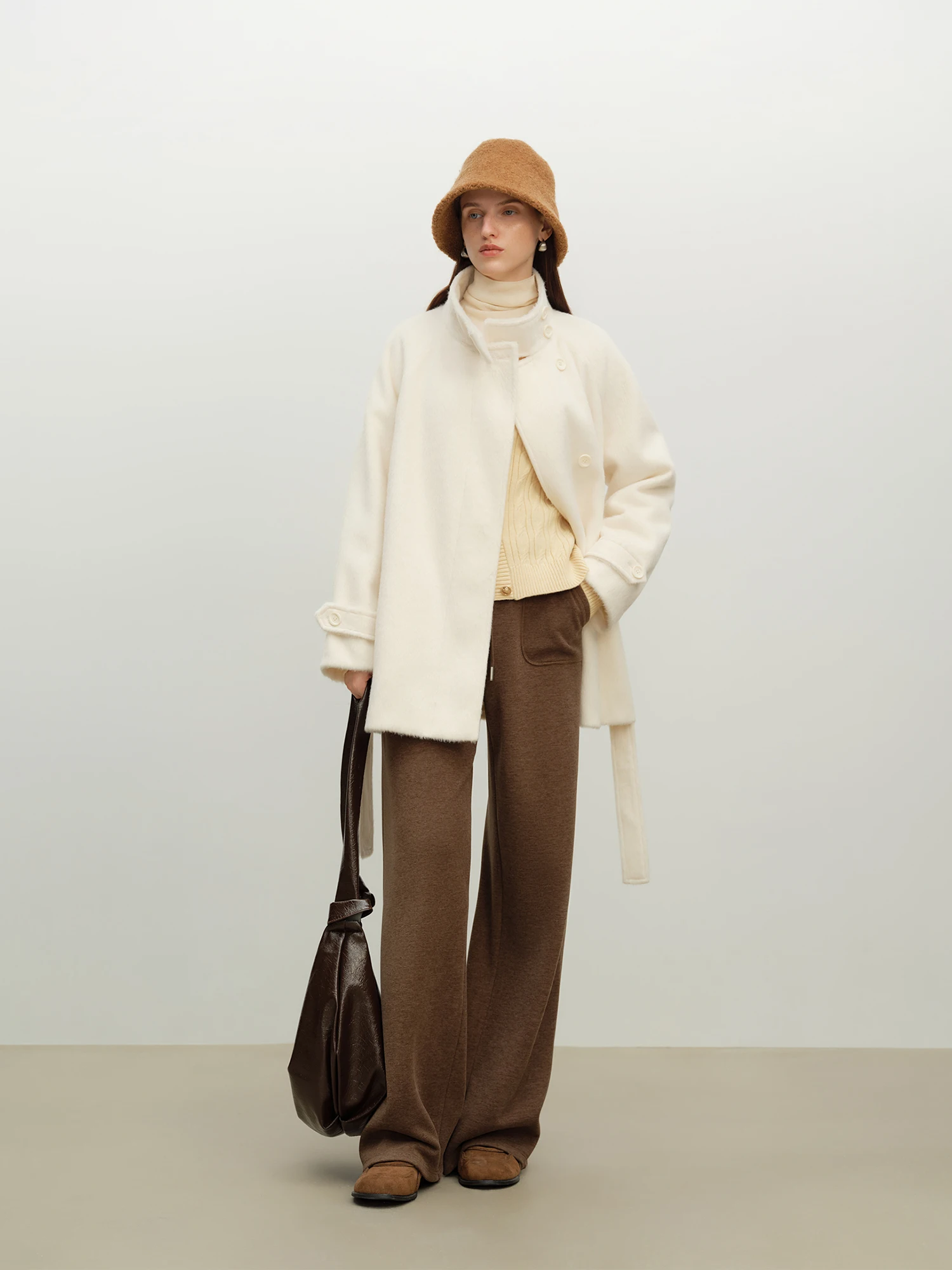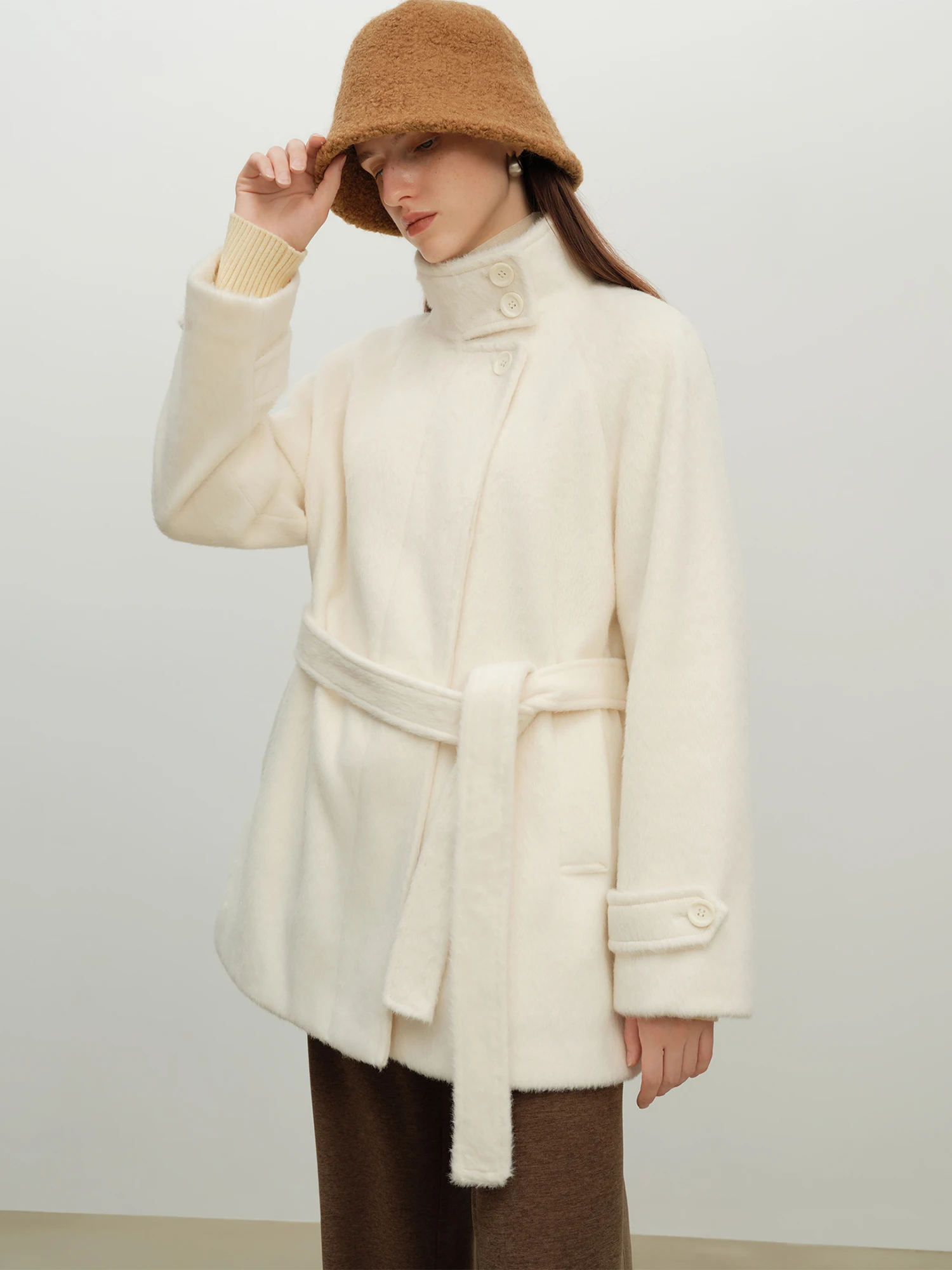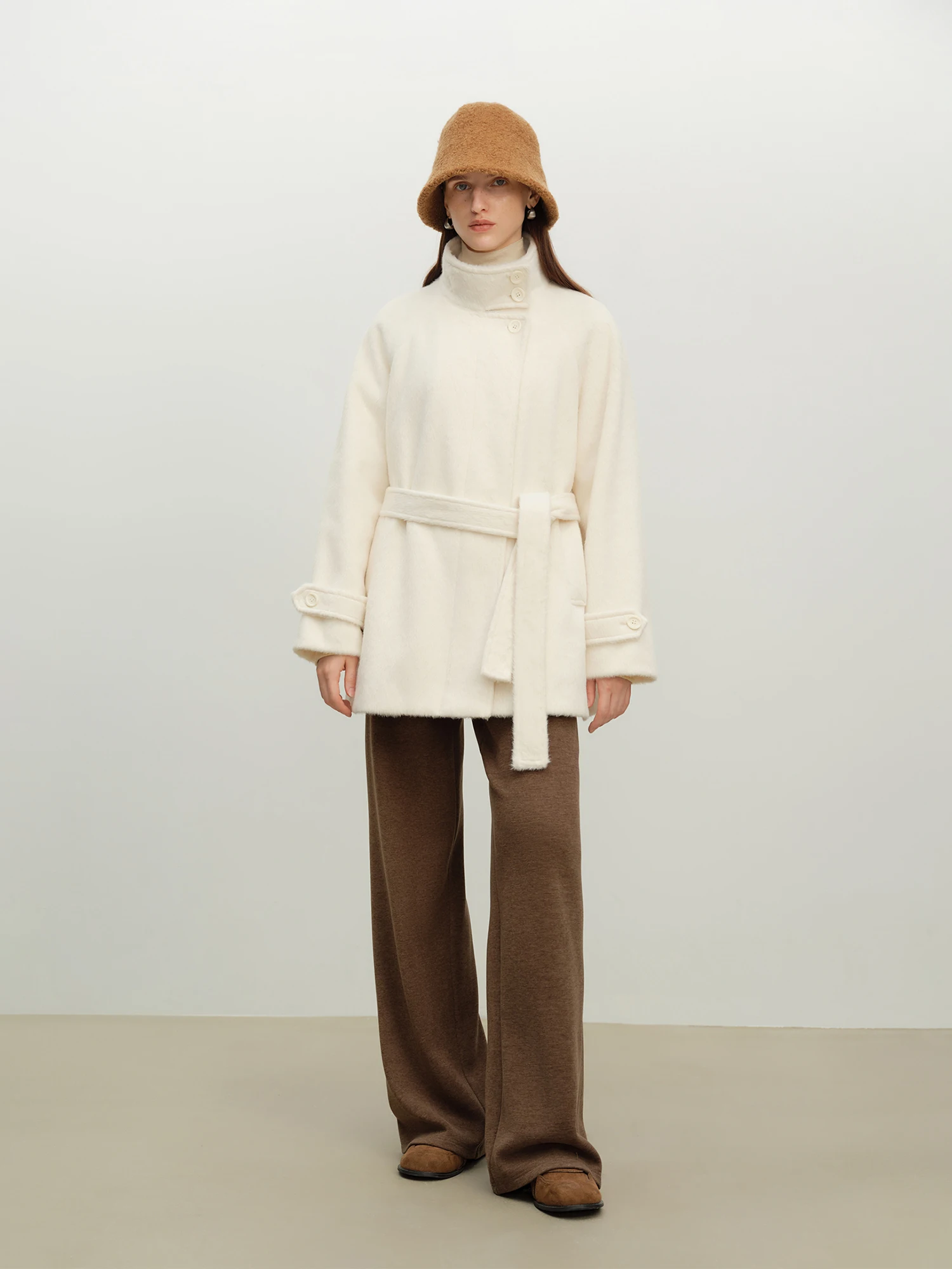 ZIQIAO Korean Style Short White Jacket for Women 2025 Early Winter New Style Stand Collar Stylish Warm Jacket